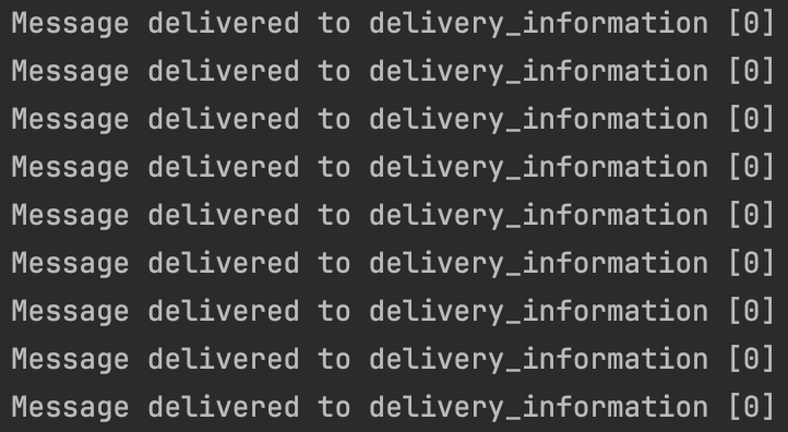 실행해보면 메시지가 publish 되어 delivery_report 함수에 지정한 메시지가 출력되는 것을 확인할 수 있다.