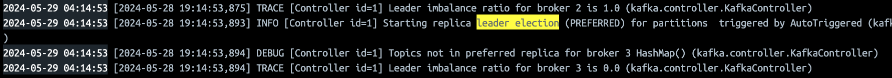 replication-offset-checkpoint 파일에는 토픽의 각 파티션에 대한 복제 오프셋 정보가 저장된다. 복제된 메시지의 위치를 나타내는 값이다.
